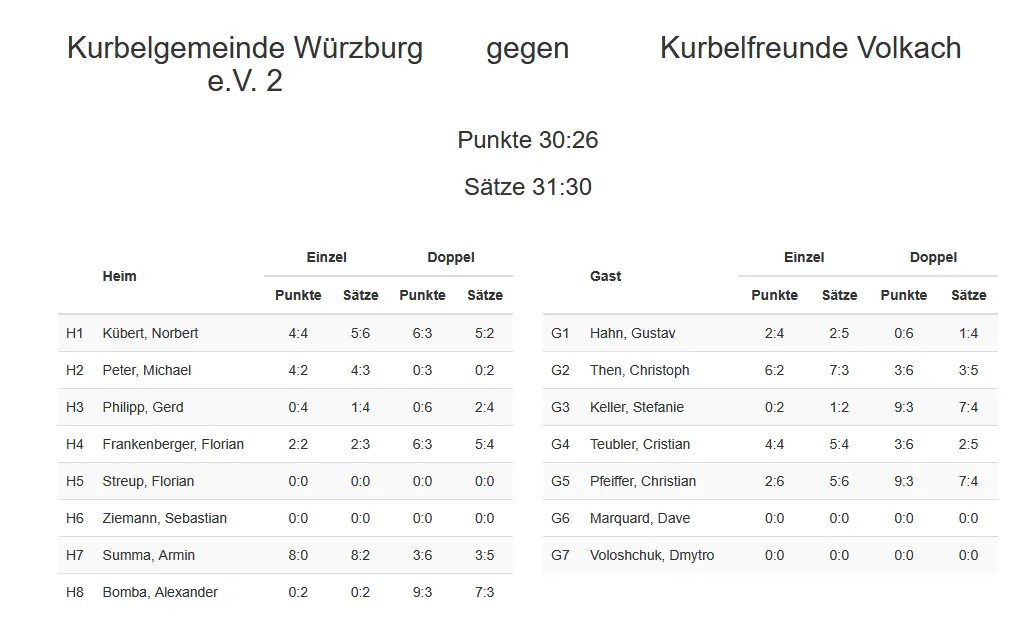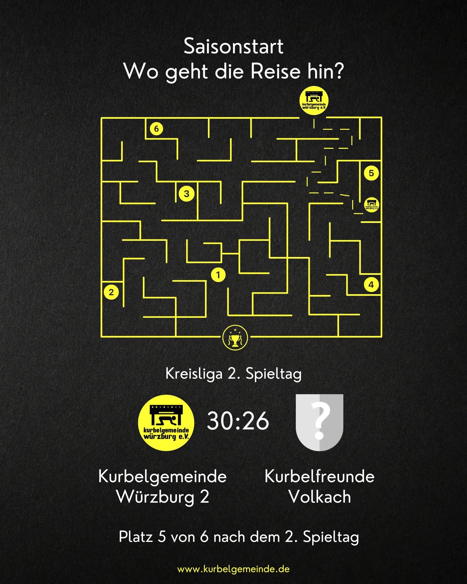 Die 2. Mannschaft durfte am 07.02.2025 ihr Heimspieldebüt für die Saison 2025 feiern. An einem Freitagabend kamen die Kurbelfreunde aus Volkach motiviert und entschlossen die Punkte zu stehlen nach Würzburg. Ein knapper Sieg für die 2. Mannschaft sorgte jedoch für ernüchterndes Abreisen und die ersten Punkte!
